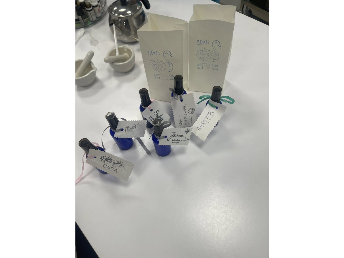 Uczniowie klas 3e i 3f uczestniczyli w warsztatach edukacyjnych w „Aptece pod Łabędziem”. Podczas zajęć mieli okazję poznać historię aptekarstwa oraz samodzielnie stworzyć własne wody zapachowe. To była niezwykle ciekawa lekcja, łącząca naukę z praktyką i kreatywną zabawą!