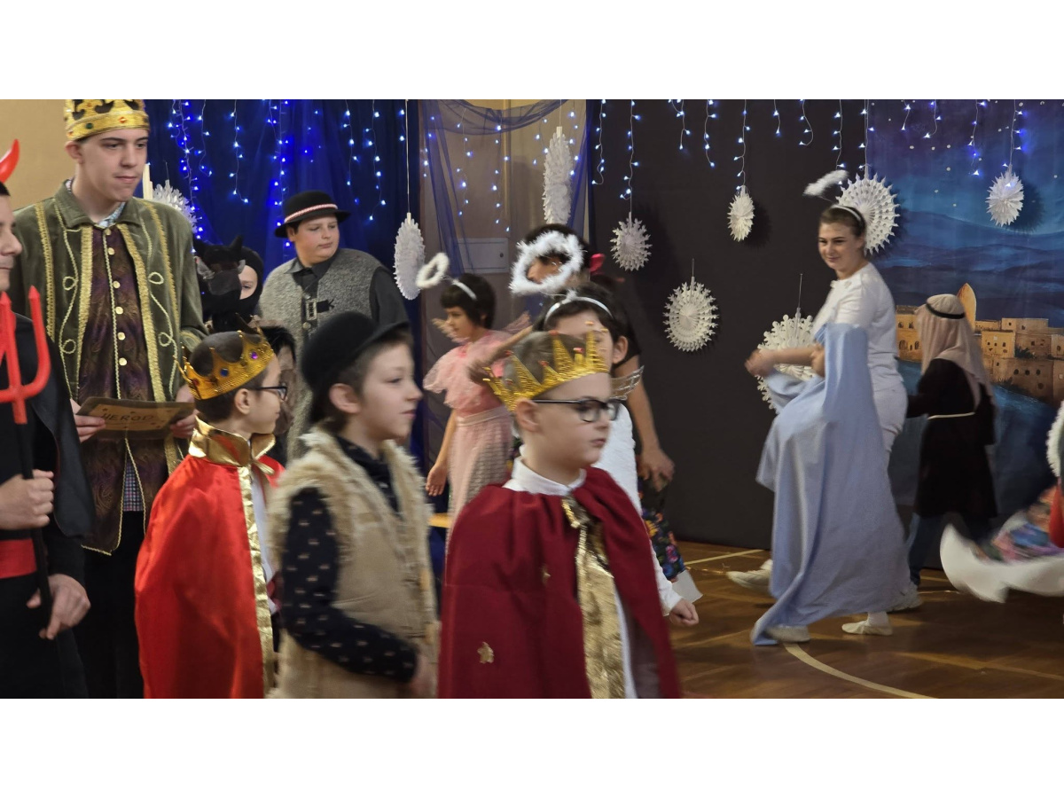 Tegoroczne Jasełka były niesamowite, niezwykle wzruszające i przygotowane z ogromnym sercem, a do tego z piękną oprawą muzyczną. To wyjątkowe wydarzenie powstało dzięki pracy Pani Agaty Andrzejewskiej i Marty Borzych, z muzyczną pomocą Pani Joanny Biały, Anny Leszczyńskiej, Moniki Zielińskiej oraz Agnieszki Duczyc. Na scenie wystąpili wspaniali aktorzy (dla części z nich był to debiut)– nasi uczniowie, którzy zachwycili publiczność i stworzyli prawdziwie magiczną atmosferę. To było naprawdę niezwykle wydarzenie, za które z całego serca dziękujemy!