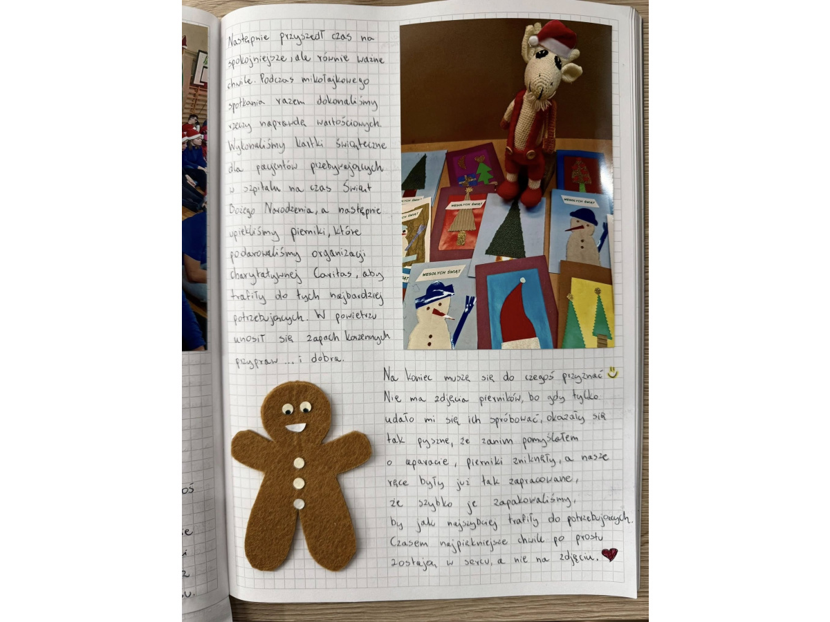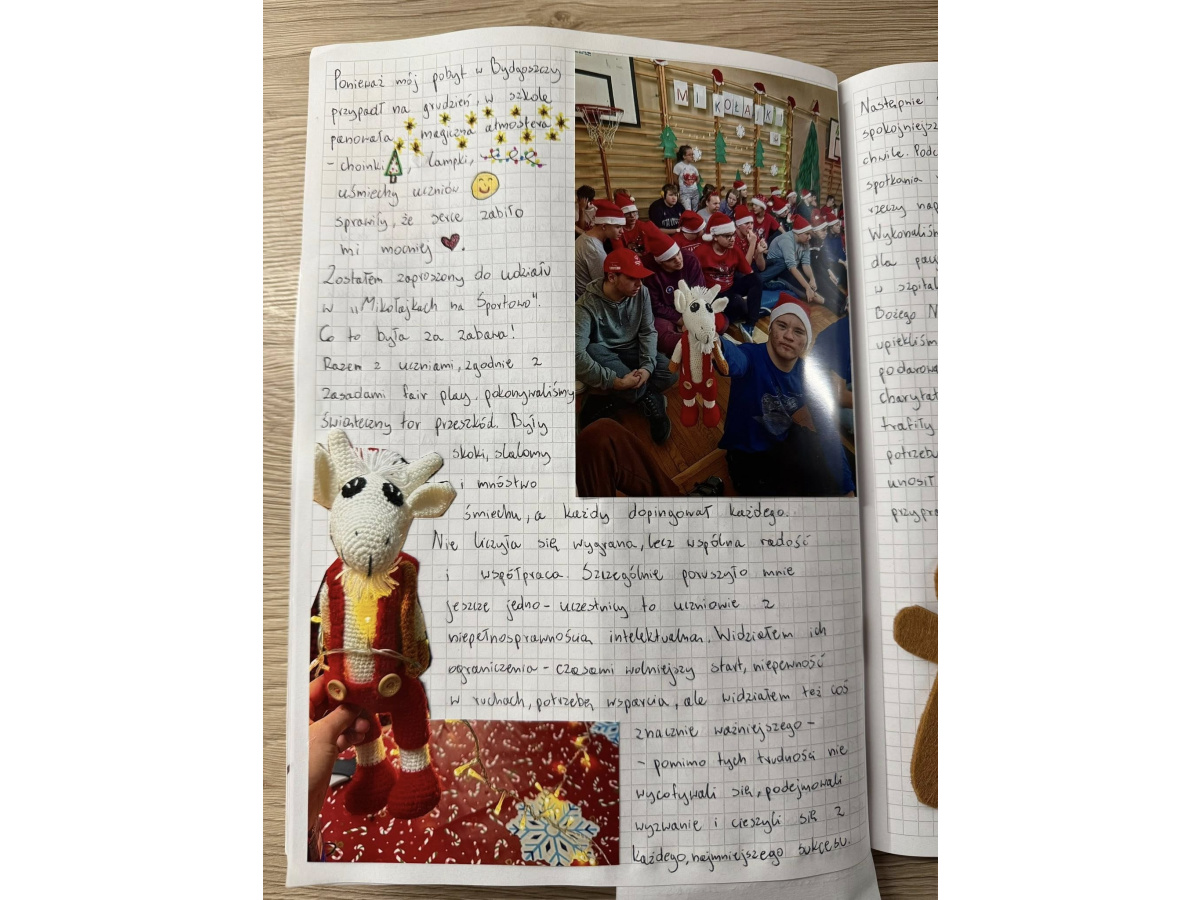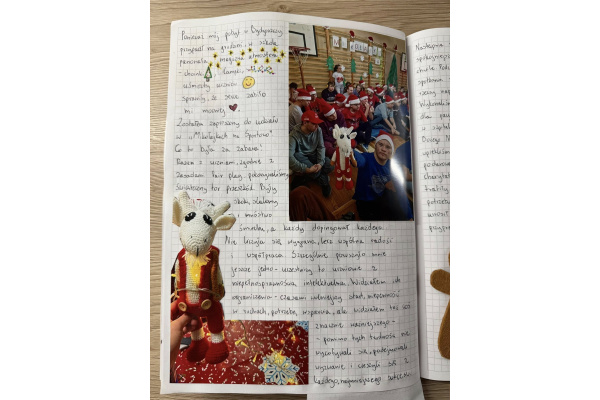 W trakcie zajęć dzieci uczestniczyły w lekcji poświęconej przygodom Koziołka Matołka – nie zabrakło zabaw ruchowych z ulubioną przekąską bohatera, czyli kapustą, a także wspólnego pakowania tobołka na kolejną wyprawę. Koziołek był również oczarowany wyjątkowo dobrą, świąteczną atmosferą panującą w grudniu w naszej szkole. Razem z dziećmi wykonywał kartki świąteczne, zdobił pierniczki i z radością obserwował ich zaangażowanie. Najbardziej jednak urzekła go panująca wśród naszej społeczności szkolnej dobroć, tolerancja oraz radość z nawet najmniejszych sukcesów. Było nam bardzo miło gościć tak ważnego dla nas bohatera.