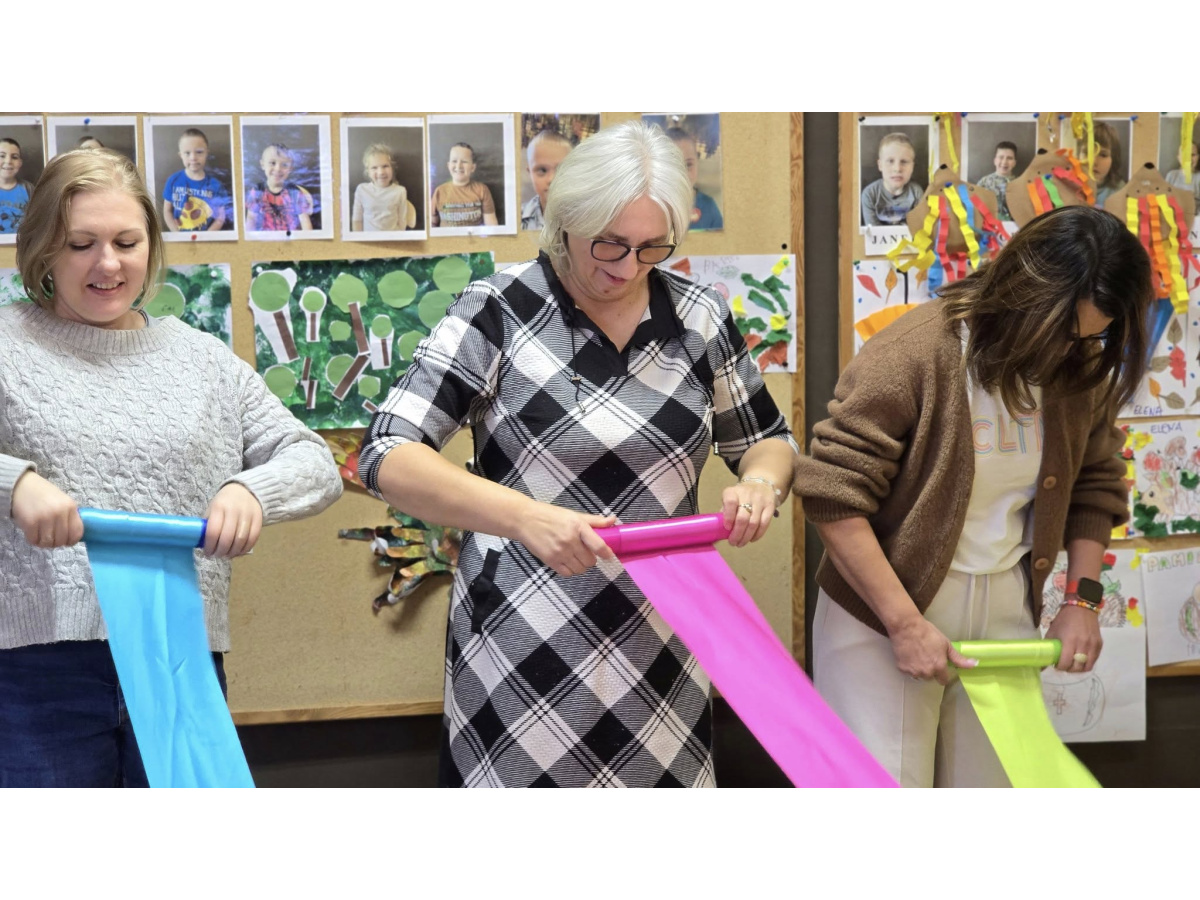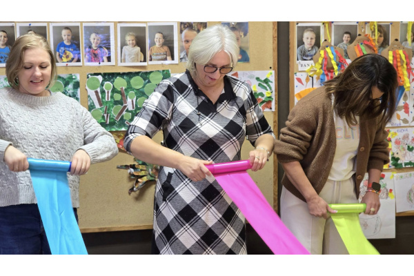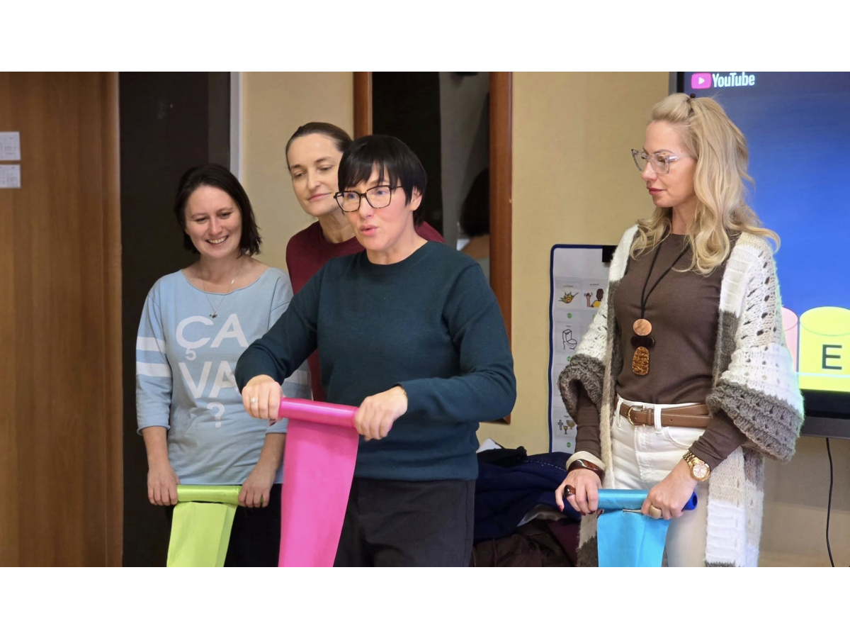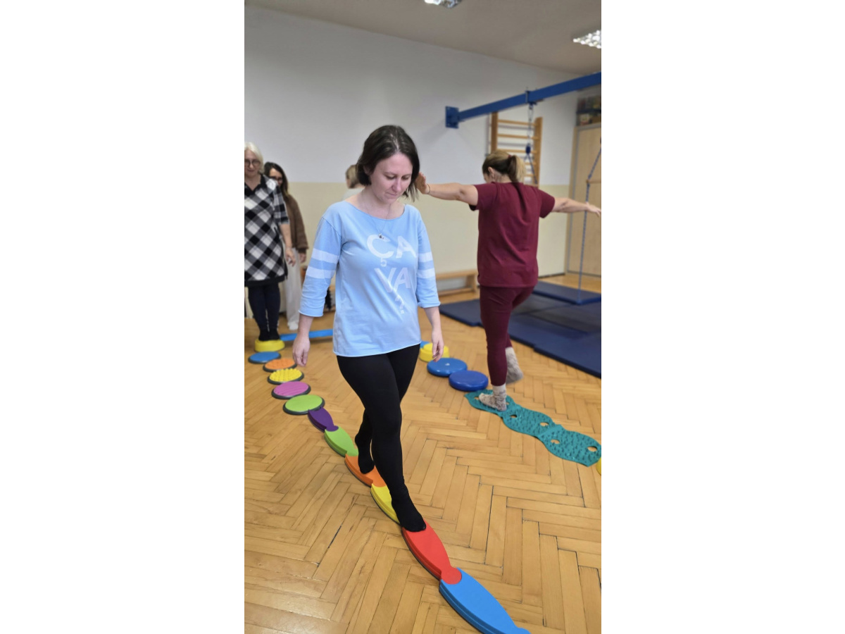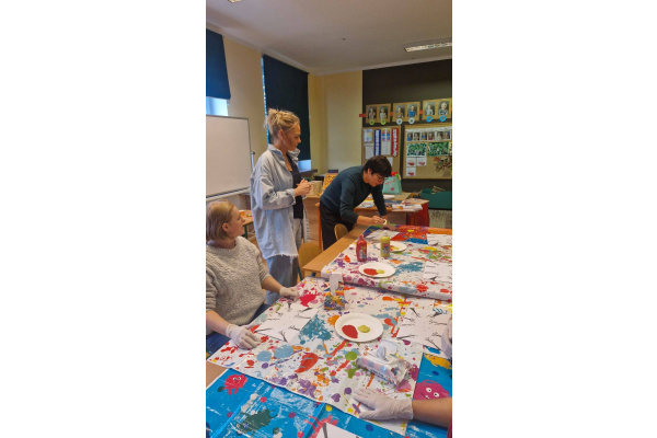 Wczoraj odbyło się pierwsze spotkanie wyjątkowego "Projektu 9 Klasa”, podczas którego to zaproszone mamy wcieliły się w rolę uczniów. Dzięki temu mogly na własnej skórze doświadczyć, w jaki sposób nasi uczniowie zdobywają wiedzę, jak uczą się poprzez działanie, doświadczanie i różnorodne aktywności. Podczas zajęć mamy miały okazję ćwiczyć motorykę małą, rozwijać spostrzegawczość, uwagę oraz inne funkcje poznawcze, które na co dzień wspieramy u naszych uczniów. W czasie warsztatów plastycznych wykazały się ogromną kreatywnością, tworząc wspaniałe obrazy - już wkrótce ozdobią one szkolne korytarze. Uczestniczki projektu rozmawiały także o emocjach, o tym, co lubią, a czego nie - dokładnie tak, jak robią to uczniowie w trakcie zajęć rozwijających kompetencje społeczne. Wzięły udział w zajęciach Zumby, integracji sensorycznej, a także nauczyły się grać na bum-bum rurkach, odkrywając, jak wspólne muzykowanie wspiera rozwój i współpracę. Nasze 9cio klasistki poznały również nasze tablice LED oraz inne środki dydaktyczne, z których uczniowie korzystają każdego dnia, by uczyć się w sposób nowoczesny, angażujący i dostosowany do ich potrzeb.