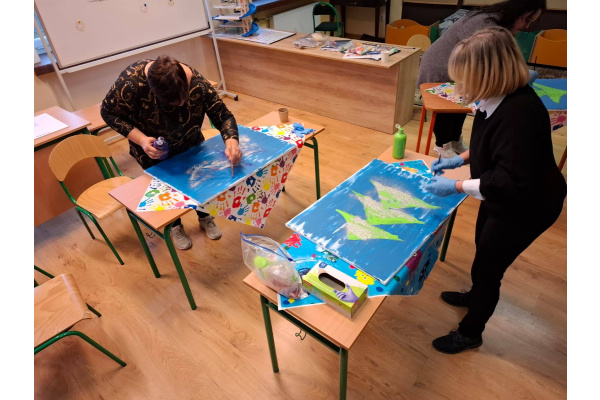 Drugie zajęcia w ramach akcji "Projekt 9 Klasa". Dziś odbyły się drugie zajęcia realizowane w ramach akcji "Projekt 9 Klasa". Uczennice klasy 9b wzięły udział w różnorodnych i angażujących aktywnościach, dzięki którym mogły rozwijać swoje pasje, kreatywność oraz umiejętności motoryczne. W programie znalazły się: malowanie na płótnach, gra na dzwonkach diatonicznych, sensoryczne aktywności w sali SI, zajęcia Zumby, tablice LED oraz rysowanie piaskiem, pomponowe ćwiczenia manualne, rozwijanie równowagi i sprawności motorycznej.Podczas zajęć padło wiele ważnych pytań i równie wiele ważnych odpowiedzi. Doświadczyć - to lepiej zrozumieć, a dzisiejsze aktywności były tego najlepszym przykładem.