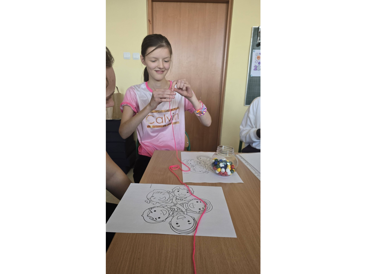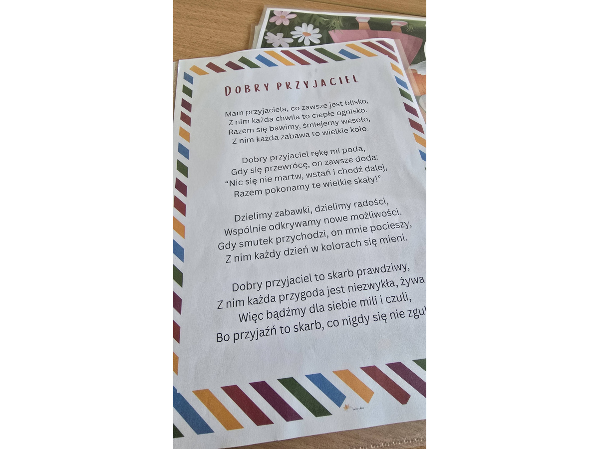 To kolejne zajecia z cyklu "Strażnicy uśmiechu". Przyjaźń to więź międzyludzka oparta na wzajemnym zaufaniu, szacunku, szczerość i akcetacji. Dla dzieci przyjaźń to fajna więź z kimś z kim lubią się bawić, dzielić sekretami. Przyjaciel to ktoś komu można ufać, kto słucha i pociesza, gdy jest smutno, z kim wspólnie przeżywa się przygody i radości. Uczniowie klasy 7b na zajęciach z iniwacji " Strażnicy Usmiechu" opowiadali czym dla nich jest przyjaźń. Odpowiadali na pytania o sobie poznając się jeszcze bardziej i wspólnie zrobili łakcuch przyjaźni.